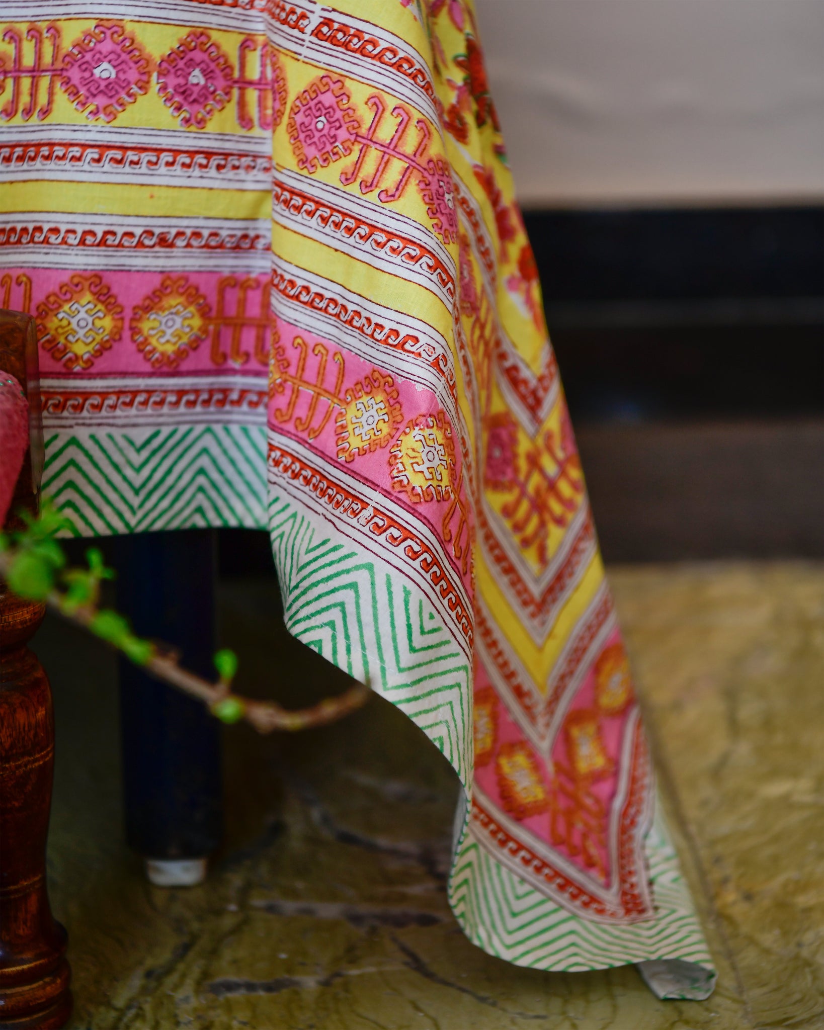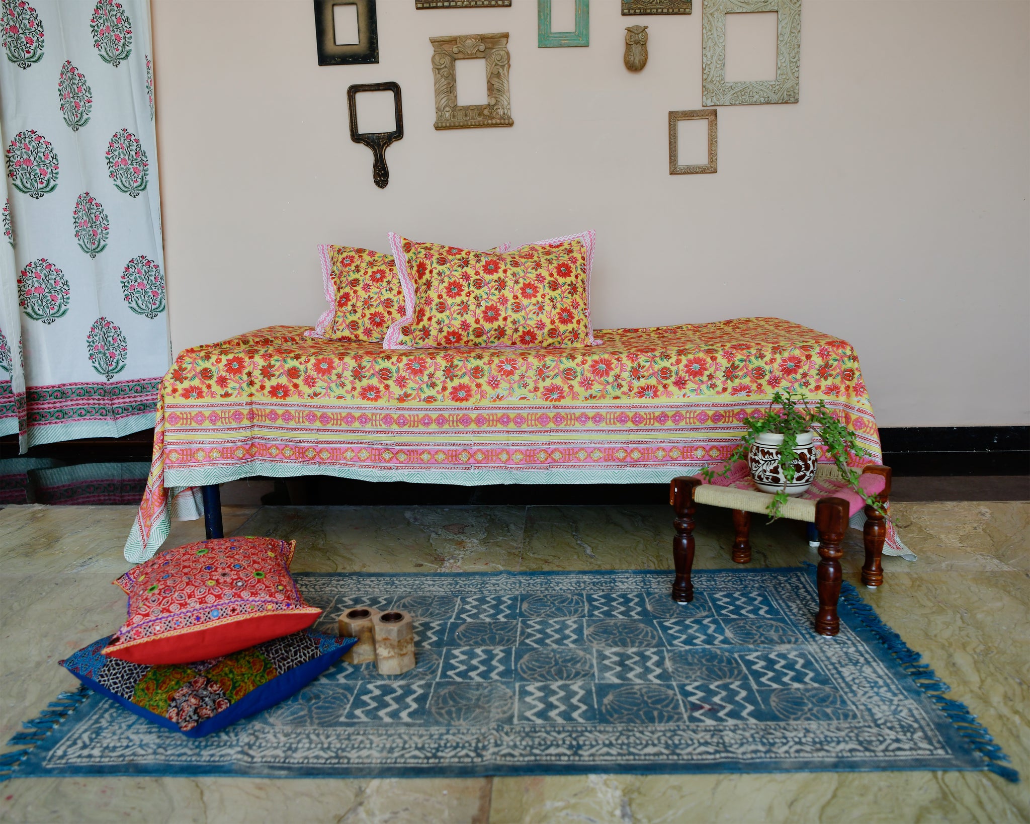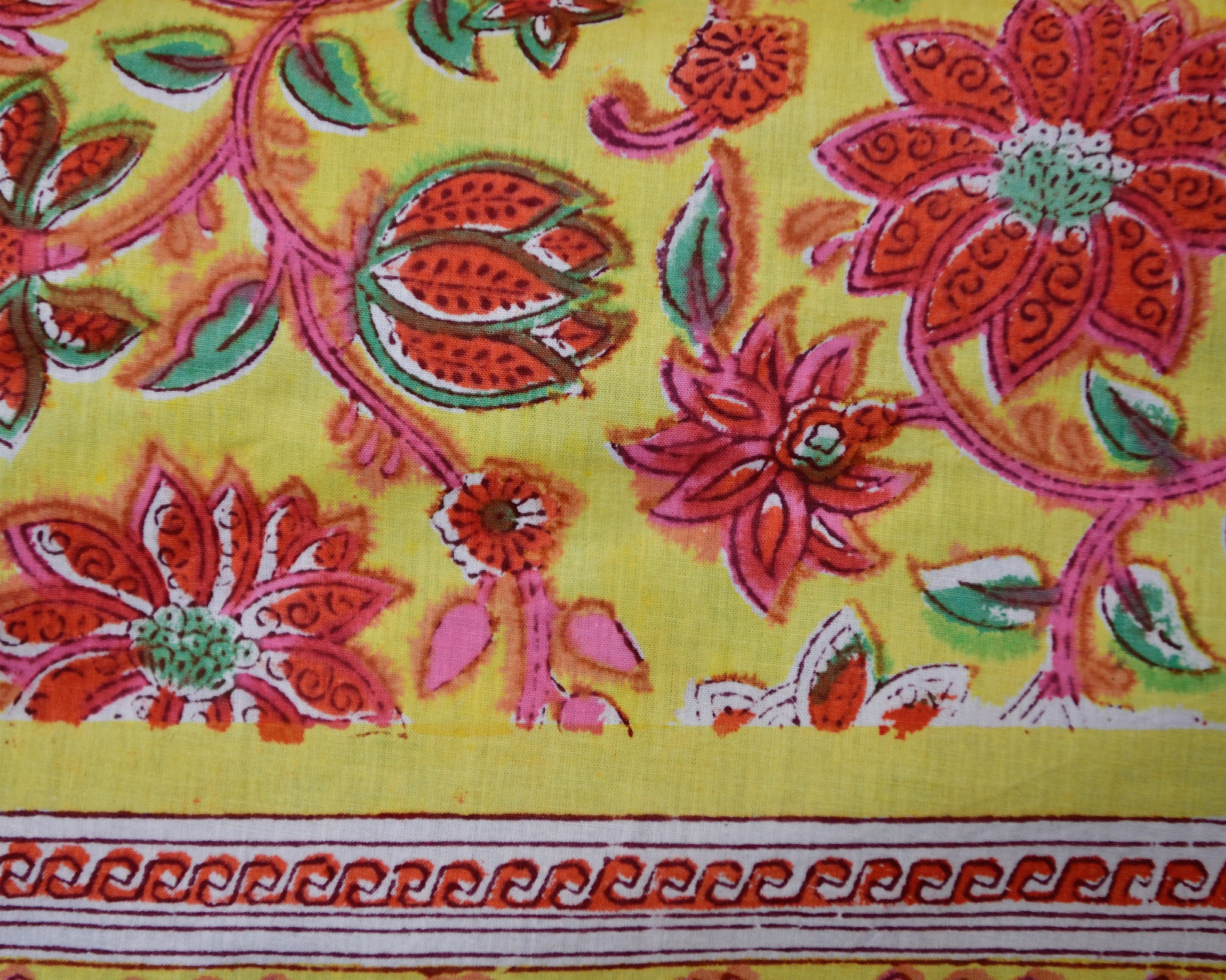 Yellow Flower Jaal Hand Block Printed Bedsheet